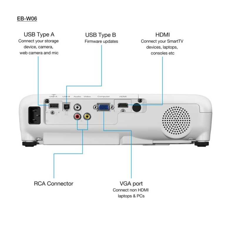 به لطف فناوری 3LCD دیتا پروژکتور EPSON EB-W06 که باعث تولید همسان 3700 انسی لومن نور رنگی و سفید می‌شود، این ویدئو پروژکتور WXGA حتی در اتاق‌های روشن نیز تصاویر درخشان، واضح و خوش رنگی را با دقیق‌ترین جزئیات به نمایش می‌گذارد.