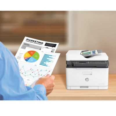 پرینتر اچ پی مدل 179fnw, پرینتر تولید شده توسط شرکت اچ پی است و به مانند پرینتر مدل M479fnw, در رده پرینترهای 4 کاره این شرکت قرار میگیرد. علاوه بر گرفتن پرینت و چاپ از اسناد و مدارک, قادر است که از آن ها کپی, اسکن و فکس نیز تهیه کند. ظرفیت سینی کاغذ این چاپگر به تعداد 150 برگ است و توان کاری ماهانه ذکر شده برای آن در حدود 20000 برگ کاغذ است که میتوانید در مشاغل اداری و تجاری با حجم کاری متوسط مورد استفاده قرار گیرد. پرینتر مدل M179fnw قابلیت تغذیه خودکار کاغذ یا همان ADF را داراست که ظرفیتی برابر با 50 برگ کاغذ را دارد و هنگامی که نیاز دارید که چندیدن سند را اسکن کنید, این قابلیت باعث صرفه جویی در وقت شما میشود و دستگاه به صورت خودکار, کار اسکن گرفتن را انجام میدهد. اما شاید بتوان گفت که مهم ترین قابلیت در چاپگر M179fnw قابلیت اتصال آن به صورت بیسیم یا همان Wi-Fi است که به کاربران خود این امکان را میدهد از طریق گوشی و یا تبلت هوشمند خود, فایل های مورد نیاز را برای تهیه نسخه چاپی به چاپگر ارسال کنند.